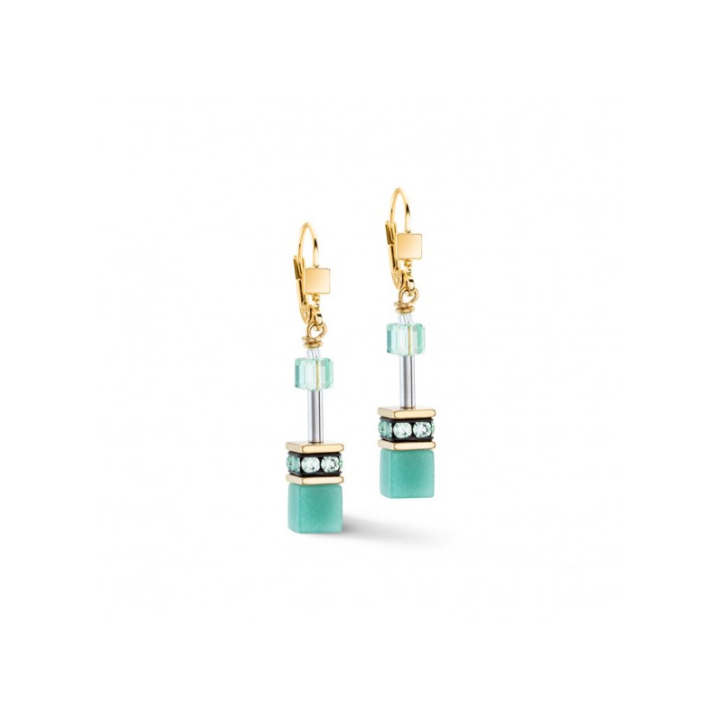 CDL GEOCUBE VERDE ACQUA ORECCHINI ORO