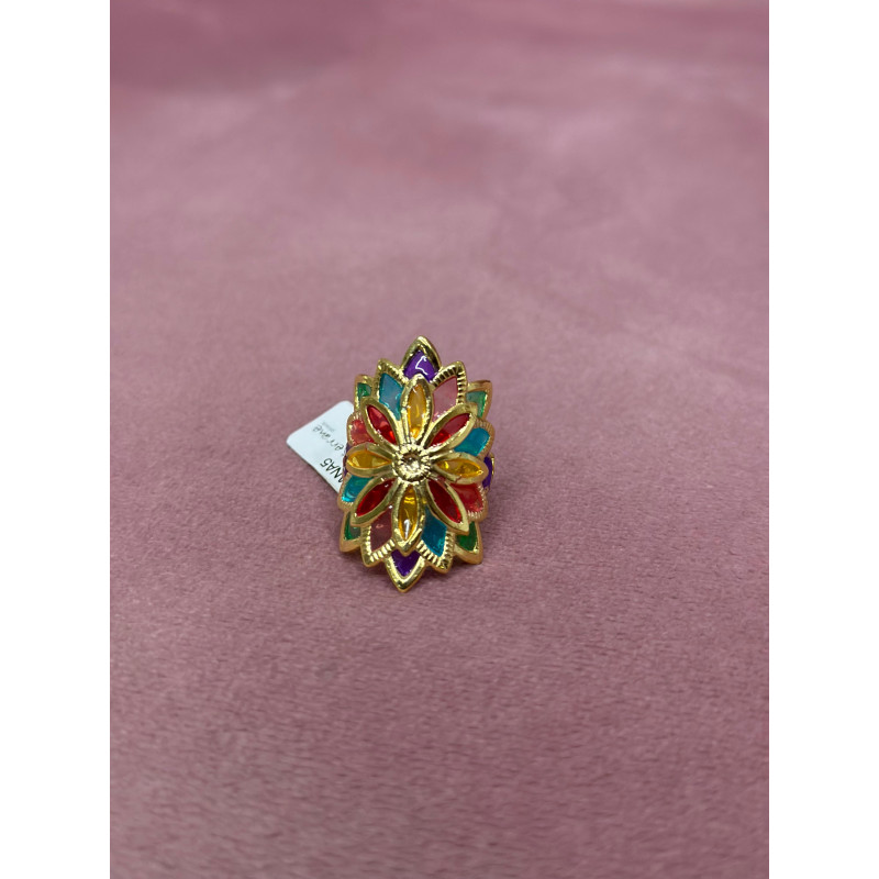 Anello regolabile in filigrana dipinta a mano, con doratura free nichel a spessore.