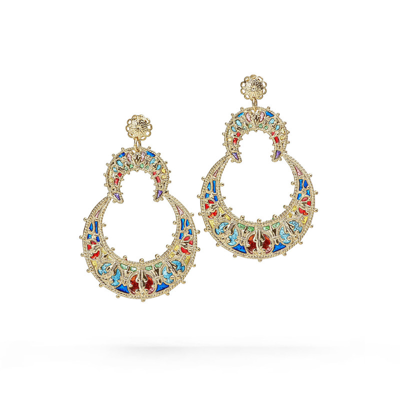 Orecchini in filigrana dipinta a mano, con doratura free nichel a spessore