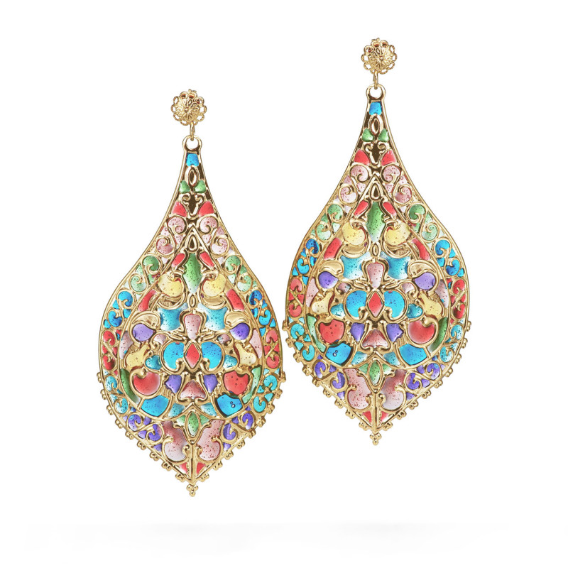 Orecchini in filigrana dipinta a mano, con doratura free nichel